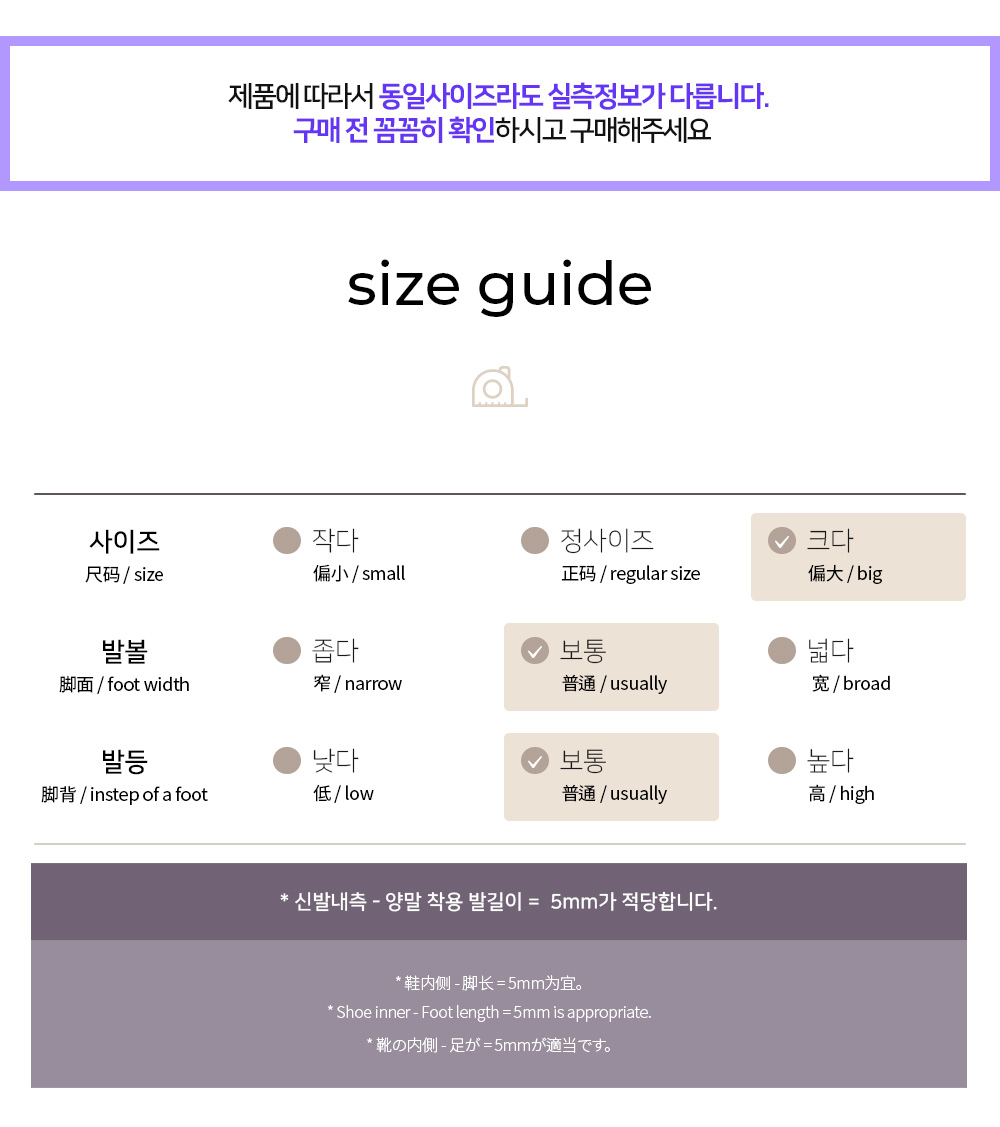 每一對鞋仔出品都經過防滑測試,鞋底非常軟及輕身👍🏻 ᴍᴀᴅᴇ ɪɴ ᴋᴏʀᴇᴀɴ 建議寶寶腳內長+1cm 用軟尺或量腳器測量寶寶的腳長 測量兩隻腳的長度,選擇較長的一隻作為參考 韓國批發市場出貨,大部分沒有鞋盒⚠️ 下單後約 10 至 20 個工作天到貨,視乎韓國店家和物流貨況,有機會延長(若貨品早到,必定提早寄出♡) 下單前請多加考慮,不接急單 🌟工作天並不包括星期六, 星期日及公眾假期 ❣️訂單送出後,不接受任何理由取消或更改,訂購前請重複核對商品顏色尺寸是否正確