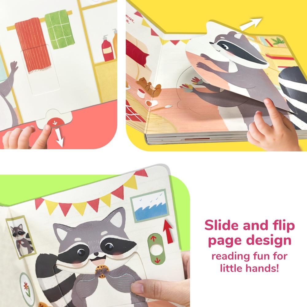🅷🅺🅳$65/1 🌟團購商品WhatsApp落單🫶🏻🌟 Habit Pals 互動繪本系列|讓好習慣“玩”出來 🐻 12本主題繪本 + 推拉滑翻超多互動 ✨ ✅動物夥伴日常陪伴 河馬刷牙🦛 小牛食pizza 🐮公雞早起🐥 每個習慣都有可愛動物示範😆孩子輕鬆代入! ✅ 小手忙不停的快樂 推開河馬嘴巴看牙齒🦷 擠壓牙膏管🧴 觸摸卷卷羊毛🦙 翻開毛絨小機關 一路玩一路學 記憶更加深刻💪🏻 ✅細節滿滿激發探索欲🔍 UV螢光印刷 仿真實材質 隱藏小翻頁 每頁都有新發現 將閱讀變成尋寶遊戲💎 🌙 超暖心設計 小羊困倦時,摸摸毛茸茸的羊毛紋理☁️ 睡前故事頁用UV印刷營造星空氛圍🌌 翻開花瓣機關露出笑臉🌸 由觸覺到視覺 全方位沈浸式學習🗺️ 12款主題探索🔠 🦛1. Hippo’s Toothbrush Fun - 河馬的刷牙樂趣 🐮2. Baby Cow’s Pizza Day - 小牛的披薩日 🐱3. Kitty’s Face Wash Fun - 小貓的洗臉樂趣 🐭4. Mouse’s Fear of the Dark - 小老鼠的怕黑 🦁5. Lion’s Clean Hair Day - 獅子的清潔頭髮日 🐑6. Sheep’s Sleepy Time - 小羊的入睡時間 🐻7. Bear’s Tidy-Up Time - 小熊的整理時間 🐯8. Tiger’s Potty Adventure - 小虎的如廁冒險 🐤9. Rooster’s Good Morning - 公雞的早安 🐘10. Elephant’s Bath Time - 小象的洗澡時間 🐨11. Koala’s Sneeze And Sniffle 考拉的噴嚏與鼻涕 🐻12. Raccoon’s Hand wash - 浣熊的洗手時間 Size:約17*17cm